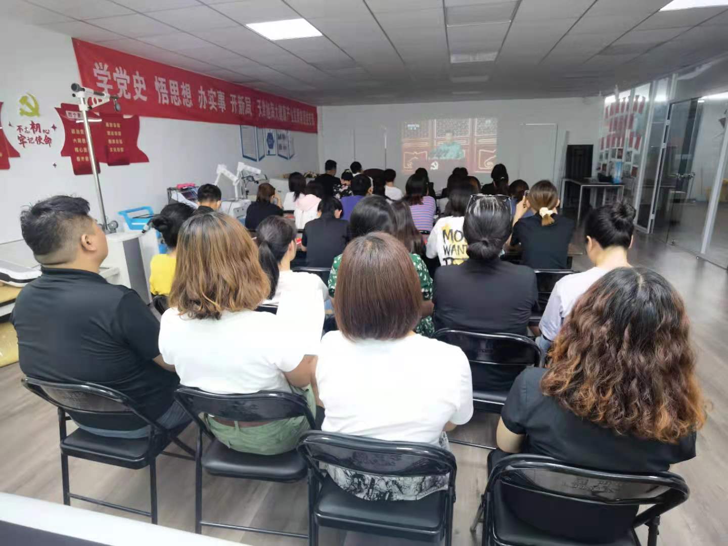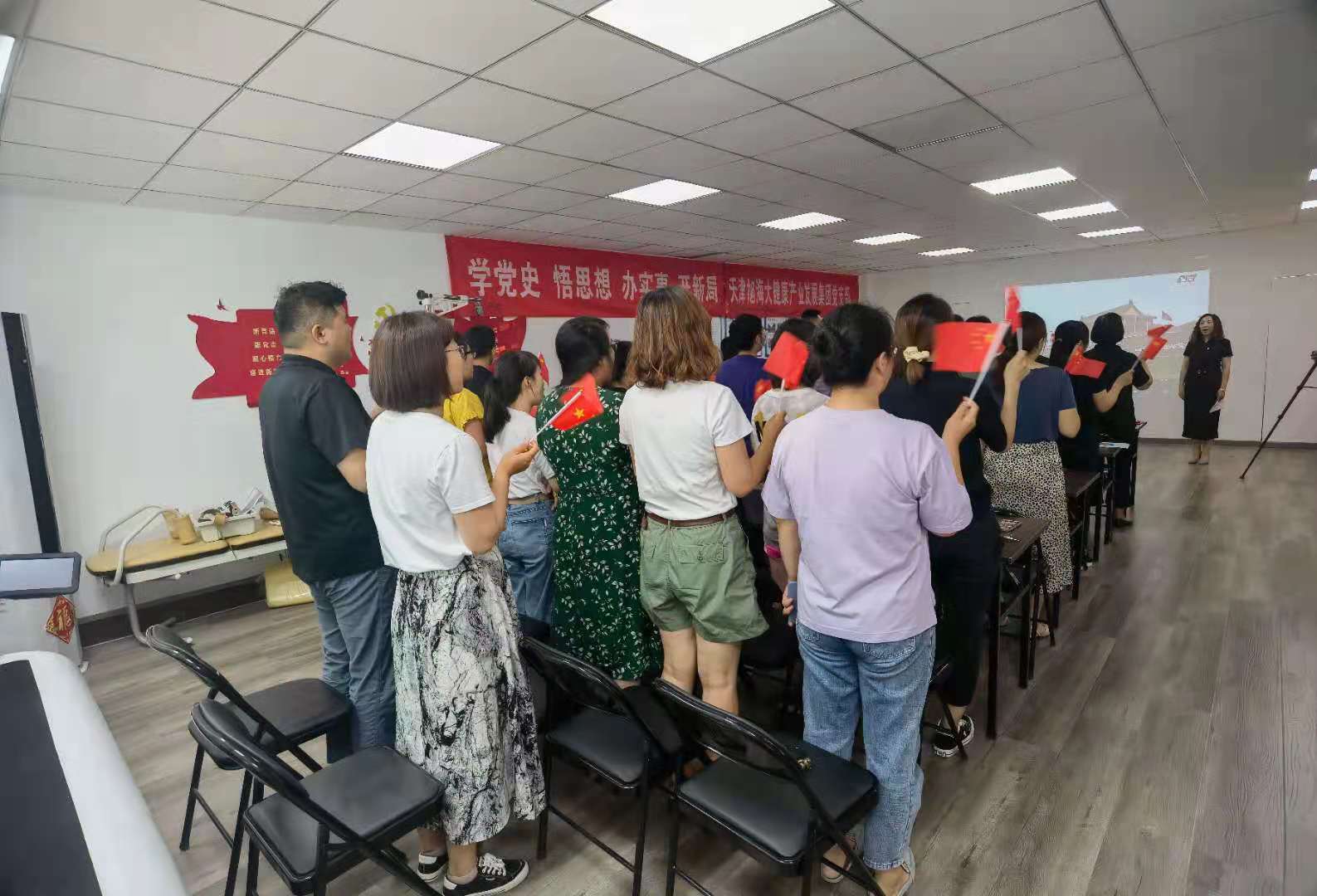 7月1日,天津旭海大健康產(chǎn)業(yè)發(fā)展集團黨支部組織全體黨員及員工集中觀(guān)看了慶祝中國共產(chǎn)黨成立100周年大會(huì )實(shí)況。