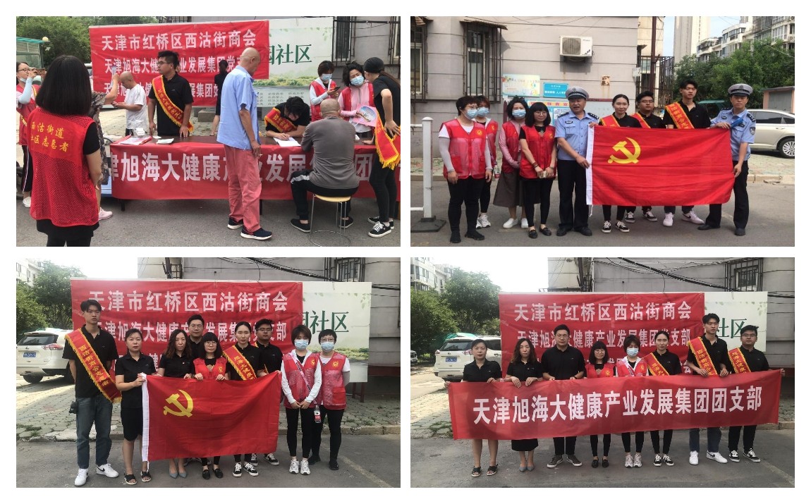 同日,天津旭海大健康產(chǎn)業(yè)發(fā)展集團有限公司黨支部黨員、積極分子、入黨申請人、共青團員及業(yè)務(wù)骨干代表旭海大健康全體員工,聯(lián)合水竹花園社區的工作人員,組成志愿服務(wù)隊,在水竹花園小區組織開(kāi)展了慶“ 七 一 ”送健康志愿服務(wù)活動(dòng),為社區的居民們免費測量血壓、贈送健康書(shū)籍和用品,協(xié)助社區建立社區健康檔案。還為社區小朋友們送上了旭海大健康職工為獻給黨百年華誕親手刻制的具有特殊意義的手刻畫(huà),傳承紅色精神。