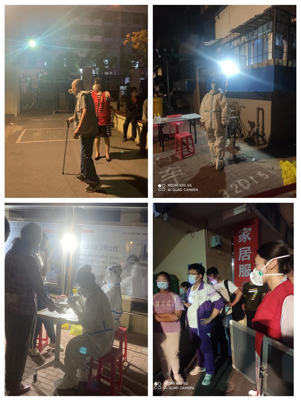 在2022年的5月20日傍晚,原計劃21日清晨的大篩工作被提前到了20日當晚,時(shí)間緊任務(wù)重,旭海大健康的志愿者顧不上吃飯就火速回到公司,在黨支部的帶領(lǐng)下迅速集結奔赴紅橋區西沽街水竹、大成、湘潭道、銀泰公寓四個(gè)點(diǎn)位進(jìn)行志愿服務(wù)工作,旭海大健康志愿者身穿隔離衣不畏危險,克服不能喝水、不能去廁所的困難,為居民做篩查登記,身穿紅馬甲奮戰在各個(gè)核酸檢測點(diǎn)維持秩序,他們在篩查前沿陣地與醫務(wù)人員和社區工作者在一起并肩戰斗,搭起帳篷,堅守監測點(diǎn)保障居民安全有序地進(jìn)行核酸檢測。