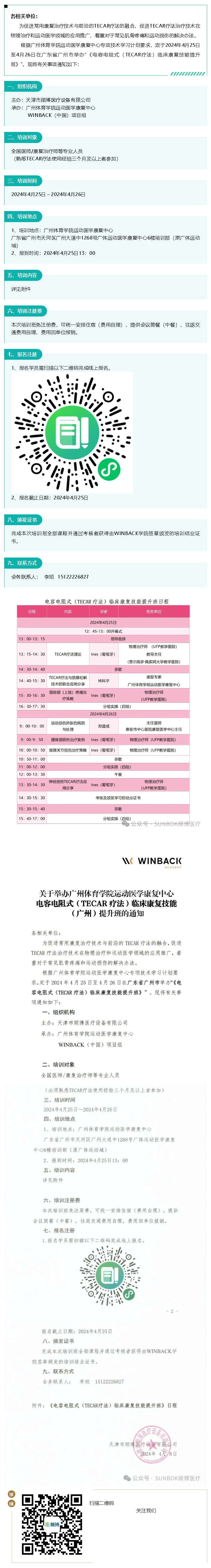 培訓通知【廣州站】丨關(guān)于舉辦廣州體育學(xué)院運動(dòng)醫學(xué)康復中心 電容電阻式(TECAR療法)臨床康復技能 (廣州)提升班的通知