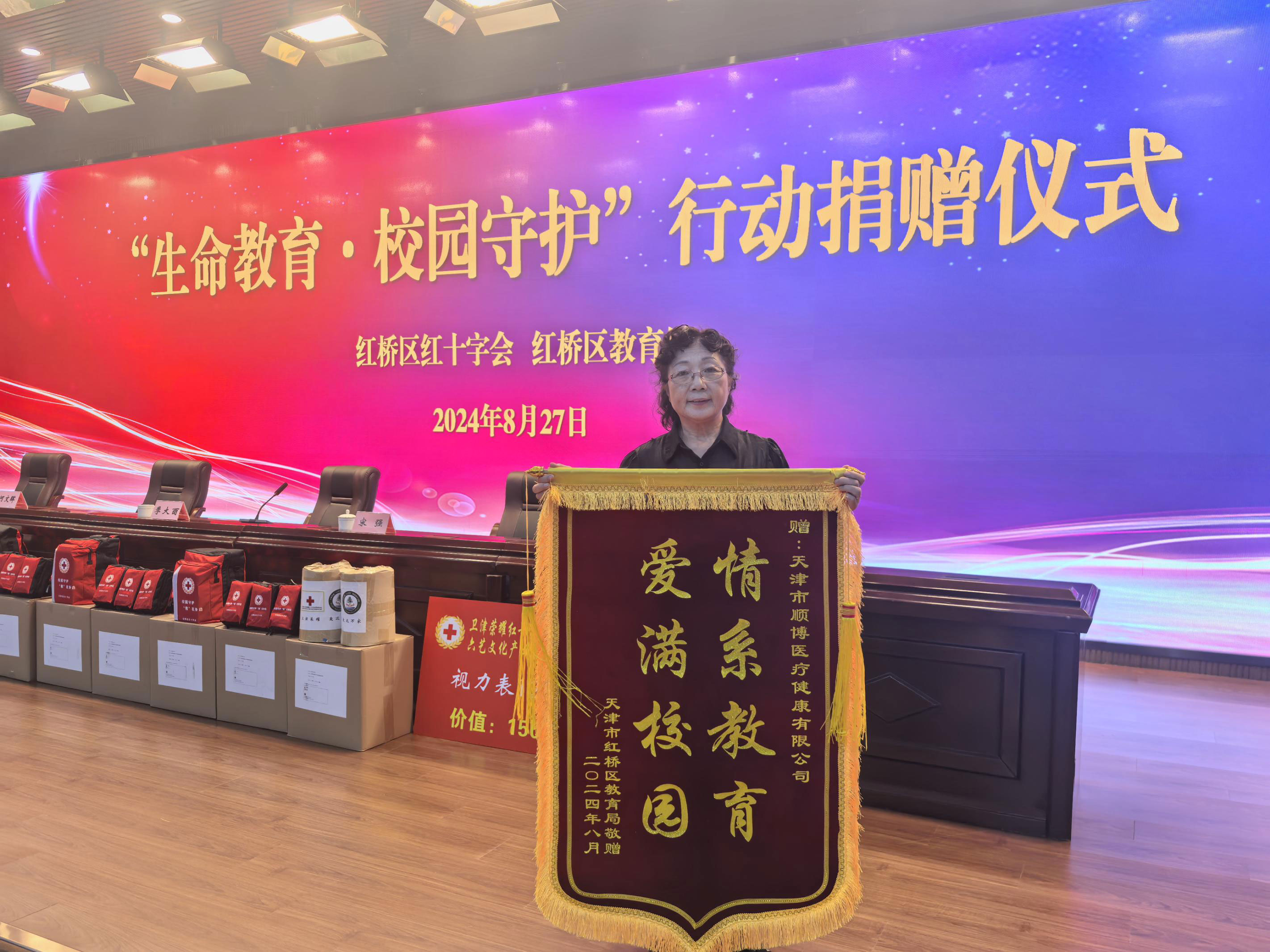 紅橋區教育局書(shū)記何文暉同志向順博醫療回贈了錦旗,這不僅 是對順博醫療善舉的肯定,更是對無(wú)私奉獻精神的贊揚與弘揚。這面 錦旗象征著(zhù)紅橋區教育局與愛(ài)心企業(yè)之間的緊密合作,共同為守護生 命、促進(jìn)社會(huì )和諧貢獻力量。