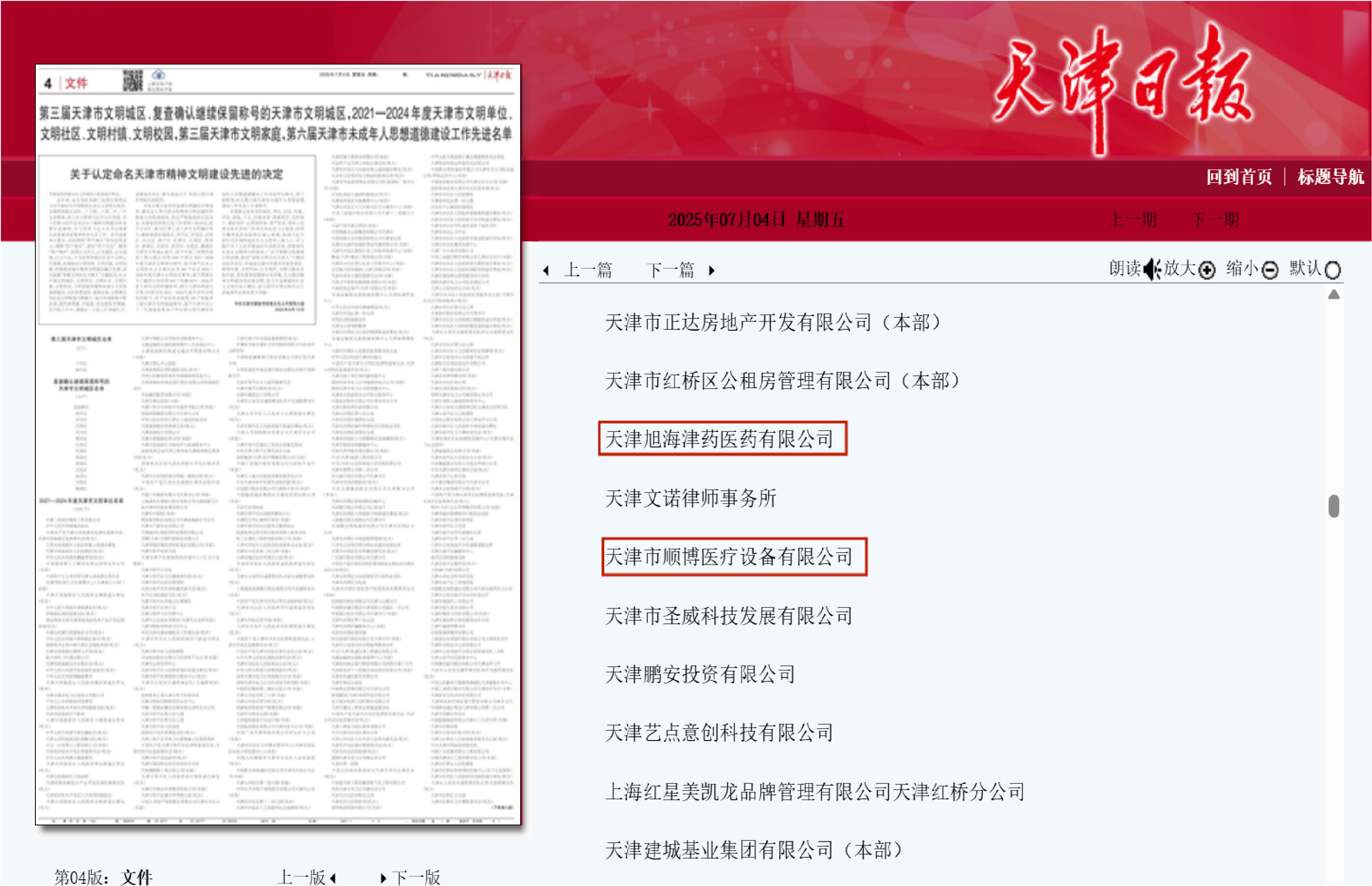 近日,中共天津市委宣傳思想文化工作領(lǐng)導小組發(fā)布《關(guān)于認定命名天津市精神文明建設先進(jìn)的決定》。順博醫療與兄弟單位旭海津藥作為民營(yíng)企業(yè),同時(shí)獲評2021-2024年度天津市文明單位。這不僅是對企業(yè)多年來(lái)努力的高度認可,更是激勵我們在未來(lái)繼續奮進(jìn)的強大動(dòng)力。
